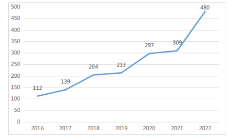 圖3 2016至2022年度第二類醫(yī)療器械注冊數(shù)據(jù)圖