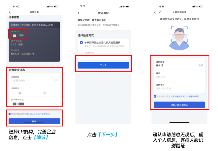 選擇CA機(jī)構(gòu),完善企業(yè)信息,完成人臉識(shí)別驗(yàn)證。
