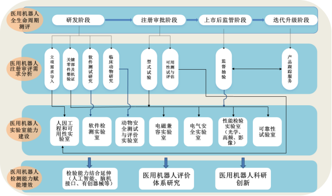 構建創新醫療器械檢測技術及標準研究實驗室,研究、解讀和宣貫最新的國際標準,應用于自主醫用機器人一體化測試與評價平臺,提升平臺的檢測技術水平,更好幫助企業在設計階段識別和規避潛在風險,為醫用機器人設計、測試和認證提供更有效、更準確的方法,提高醫用機器人安全性和有效性。