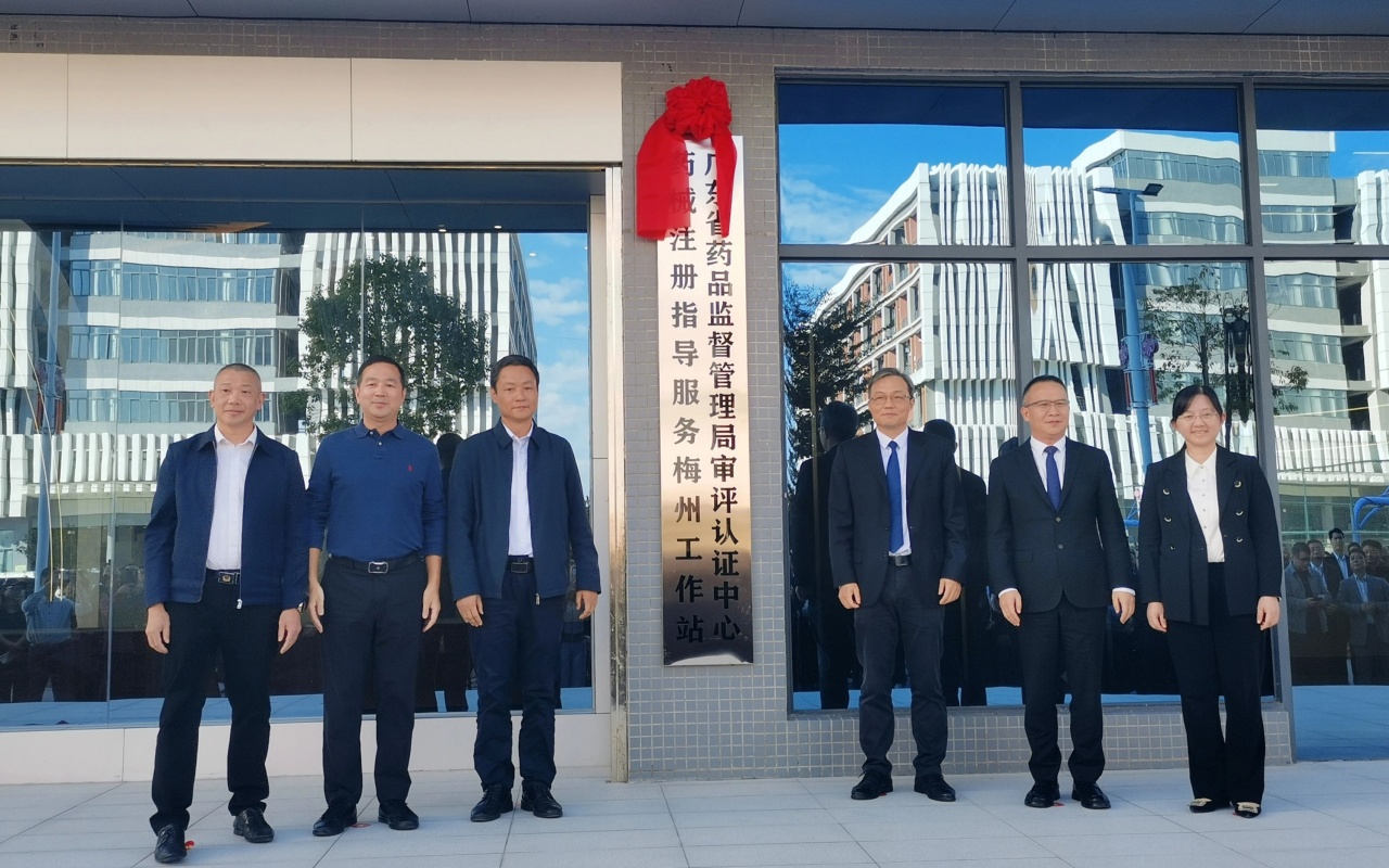 梅州市委常委、副市長蔣鯤,省藥品監管局黨組成員、副局長邱楠,省藥品監管局審評認證中心黨委書記、主任曾祥衛,省藥品監管局行政許可處有關負責同志,梅州市政府、梅州市市場監管局、興寧市委市政府有關負責同志共同出席活動,并為工作站揭牌。