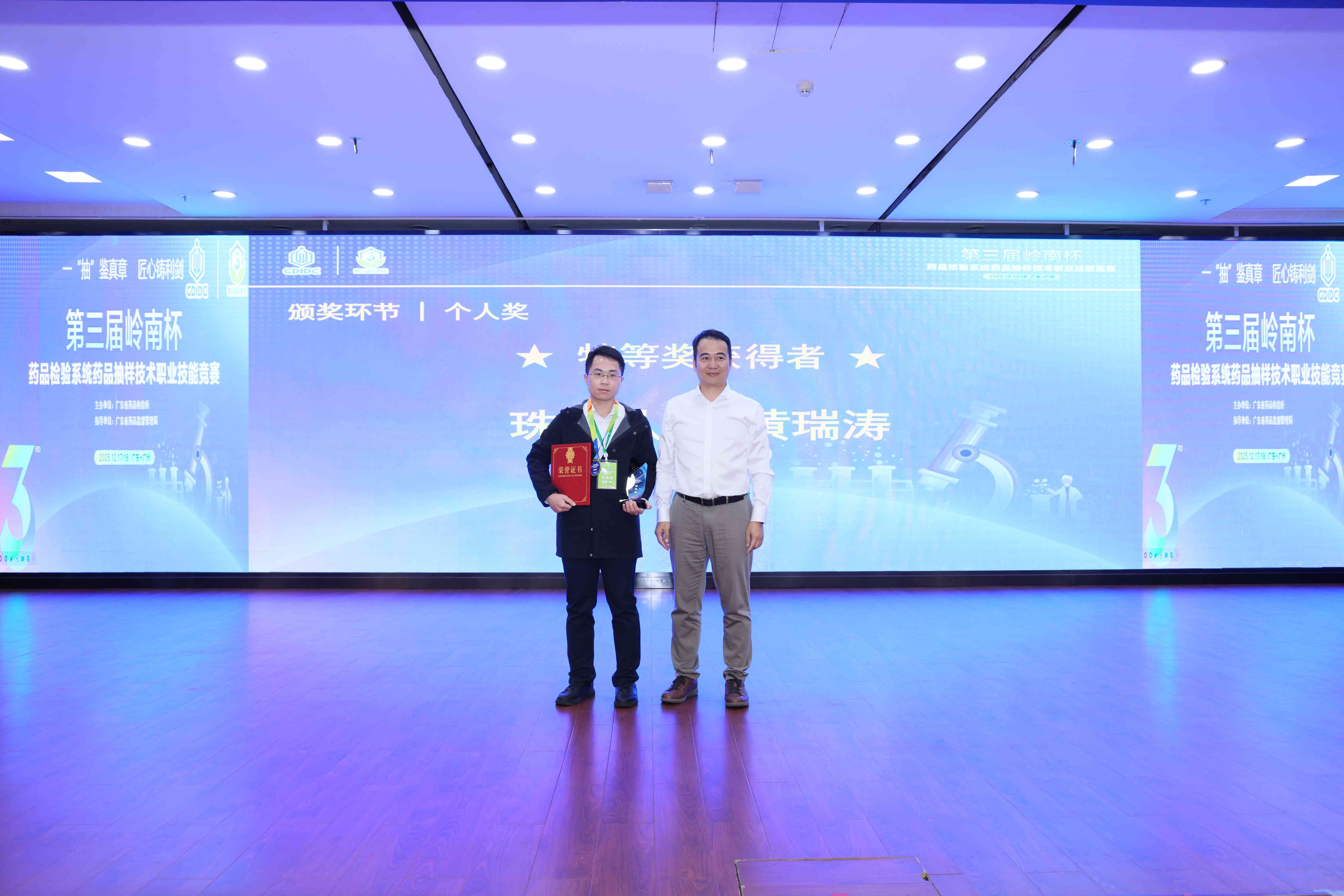 本屆競賽延續(xù)“以賽促學、以賽促練、以賽促訓”的辦賽理念,在省總工會、省財貿(mào)工會的大力支持和省藥品監(jiān)管局的悉心指導下,緊扣“培育新質(zhì)生產(chǎn)力”戰(zhàn)略部署和藥品監(jiān)管實戰(zhàn)需求,呈現(xiàn)出鮮明的專業(yè)特色與實踐導向。競賽內(nèi)容涵蓋藥品、化妝品兩大核心板塊,設(shè)置了理論知識考核與抽樣實操考核,全面檢驗選手的專業(yè)素養(yǎng)與實操能力。經(jīng)過激烈角逐,來自珠海市食品藥品檢驗所代表隊的黃瑞濤在42名選手中拔得頭籌,獲得個人特等獎,珠海市食品藥品檢驗所代表隊獲得團體一等獎。