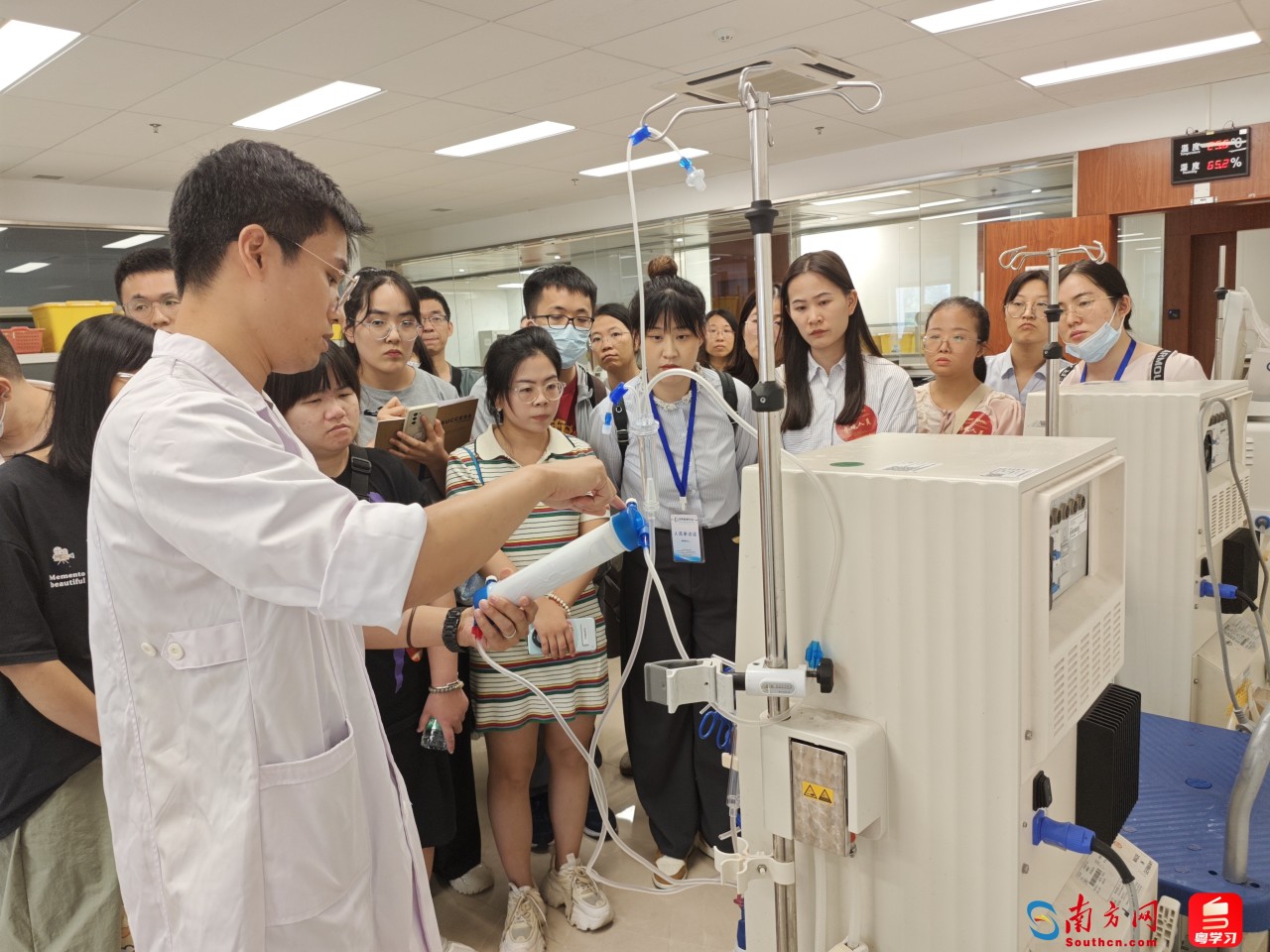 在隨后的實驗室參觀環節,參觀人員親身體驗了透析器、透析液等醫療器械產品的檢驗過程,并在互動交流區參觀了體外膜肺氧合(ECMO)系統、連續性腎臟替代治療(CRRT)機等高端醫療設備使用演示,深入了解其工作原理、研發歷程及檢驗要點。