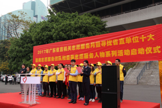 為宣傳志愿服務先進典型,用身邊榜樣引領志愿文化,2017年3月5日上午,省直機關工委、省文明辦、省紅十字會在廣州天河體育中心西南廣場舉行省直機關志愿服務月活動暨尋找省直單位十大最美志愿團隊和最美志愿服務人物活動啟動儀式。省局團委組織青年志愿者積極參加現場志愿服務活動。