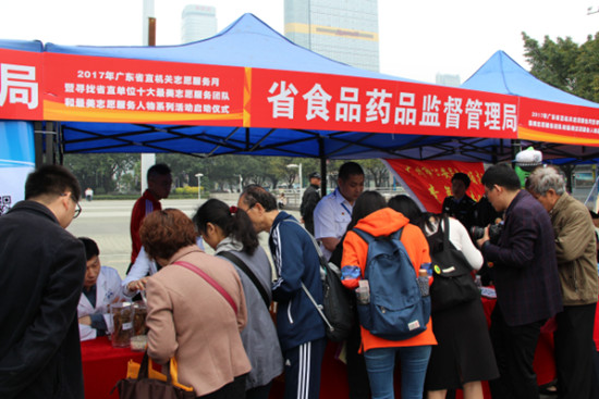 活動向2016年省直單位“十大最美志愿者”和“十大最美志愿者提名獎”獲得者頒發證書和獎杯,省直各單位志愿服務崗代表上臺宣讀了志愿服務承諾。活動中,省局團委在活動攤位設置了食品藥品科普宣傳資料派發、中藥材快速鑒別演示、酒類鑒別演示、醫療器械演示、咨詢及公眾體驗服務環節,結合“冬蟲夏草”、“鹿茸片”、“洋酒”、“體溫計”、“血壓儀”等實物樣品,向市民群眾傳授真偽鑒別的技巧及要點、醫療器械的正確使用方式,增強了公眾科學飲食、安全合理用藥意識及如何正確使用醫療器械儀器等專業知識。活動共派發200多份資料,接受群眾咨詢300多人次。