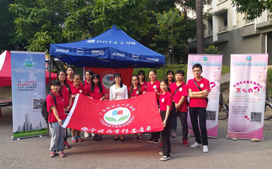 志愿者團隊在校園內為師生派發《認識化妝品,關注化妝品不良反應》宣傳小冊子,使更多的學生能了解化妝品安全知識;廣東省藥品不良反應監測中心、廣東省藥理學會為學生進行現場咨詢,解答學生在日常生活中遇到的化妝品安全知識相關問題。