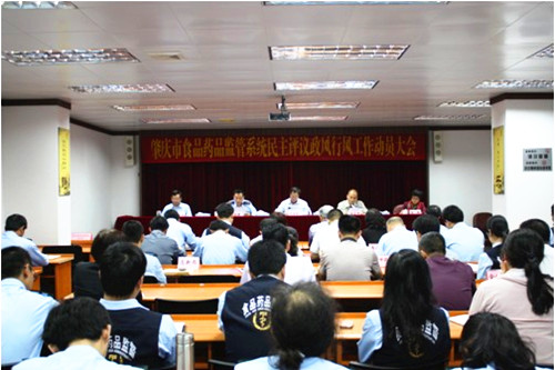 根據省、市關于開展民主評議政風行風工作要求,肇慶市食品藥品監管系統被列入重點評議對象,民主評議工作分為動員部署、自查自糾、整改落實、集中評議考核、總結通報階段五個階段。在評議工作中,各單位“一把手”對評議工作負總責,民主評議工作的各項任務及相應責任落實到具體部門、崗位和人員,并考核到人。將評議工作與食品藥品監管工作、與群眾路線教育實踐工作有機結合,加大對損害群眾利益的食品藥品違法行為的查處力度,著力解決人民群眾關心的熱點、難點問題,推動食品藥品監督管理工作持續穩定發展。(肇慶市局行評辦、省局食品生產安監處供稿/圖)
