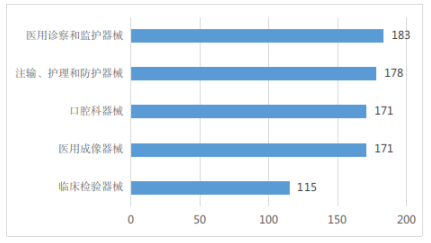圖5 首次注冊(cè)醫(yī)療器械(除體外診斷試劑)數(shù)量前五位(按產(chǎn)品分類目錄)
