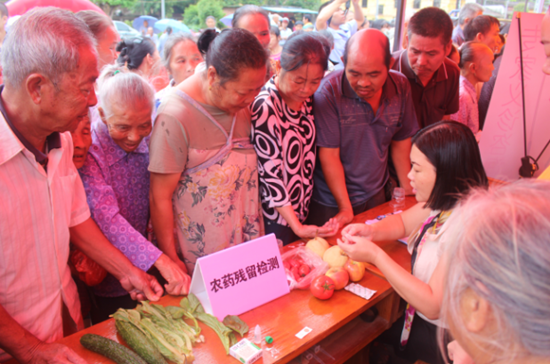 本次活動受到廣大村民的熱烈歡迎,活動現場熱鬧非凡,前來參與此次活動的村民絡繹不絕?;顒舆^程中,科普資料的派發區吸引了大批村民,相關科普視頻的播放也引來很多村民駐足觀看。氣氛最濃厚的當屬專家咨詢和義診活動!活動剛開始,專家咨詢桌就被圍得水泄不通。幾位專家根據村民在食品安全及用藥安全方面易出現的問題作了詳細的解答,并給出合理建議。義診項目中,測血壓也吸引了大批村民。隨著活動的進行,測血糖和針灸按摩也得到了村民的青睞,且工作人員對血壓血糖測量值有異常的村民都給出了合理的建議,村民參與的熱情非常高?;顒又校r殘檢測讓村民了解了農藥的危害性,引導他們自覺抵制使用高毒、劇毒農藥。