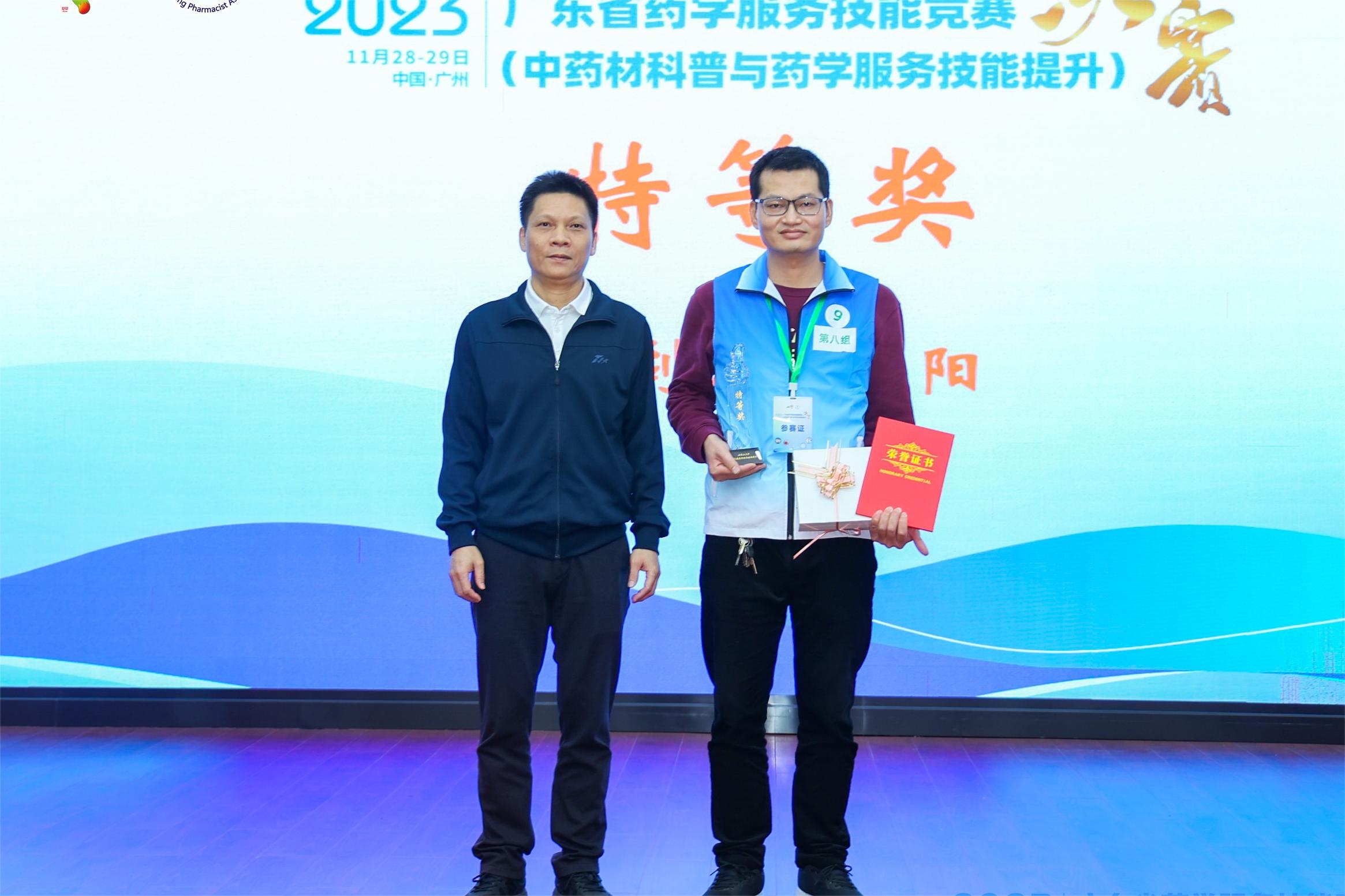 廣東省藥品監督管理局藥品安全總監葉永才為特等獎獲得者頒獎